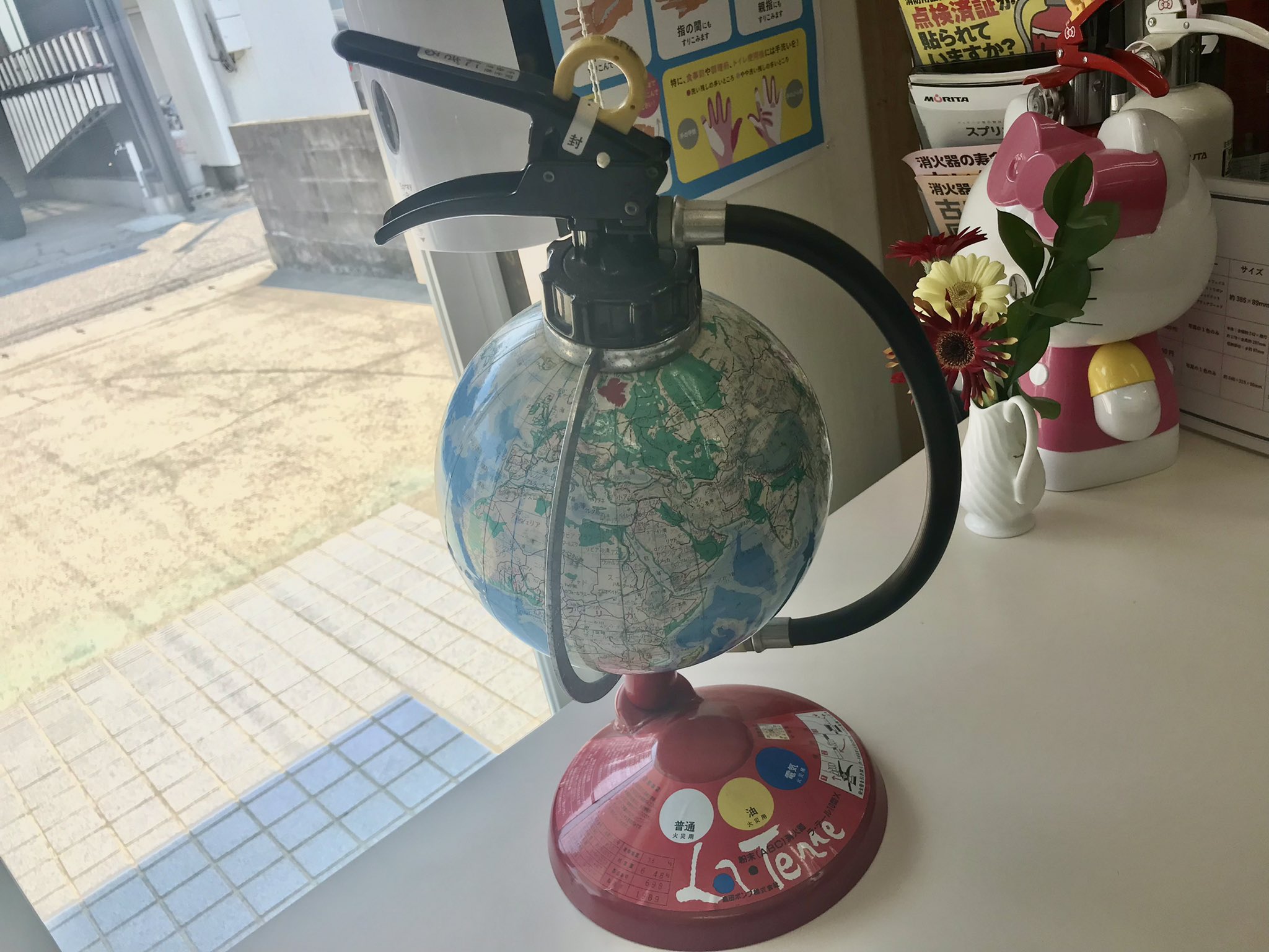 なんだか変わった消火器が飾ってありました!!