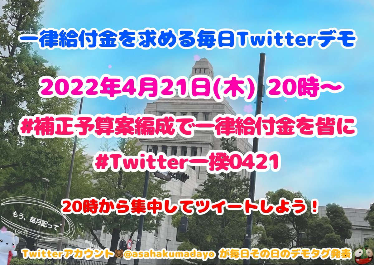 今日はタグだけで失礼します。#補正予算案編成で一律給付金を皆に