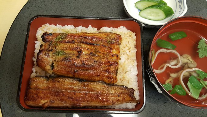 “赤い台本” と “うな重”の写真…