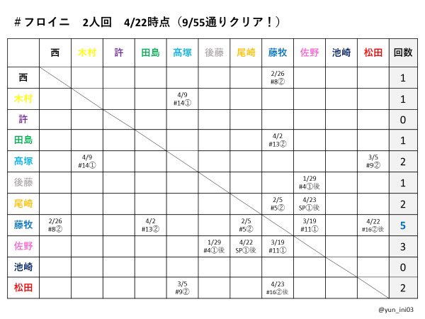 #フロイニ 差が広がってしまった🥺週間で10,202💦