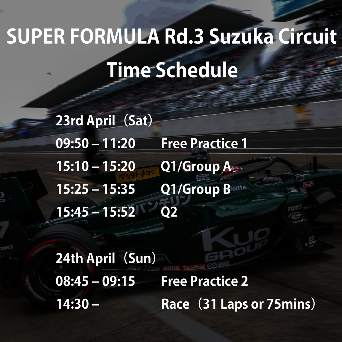 本日SUPER FORMULA Rd.3鈴鹿