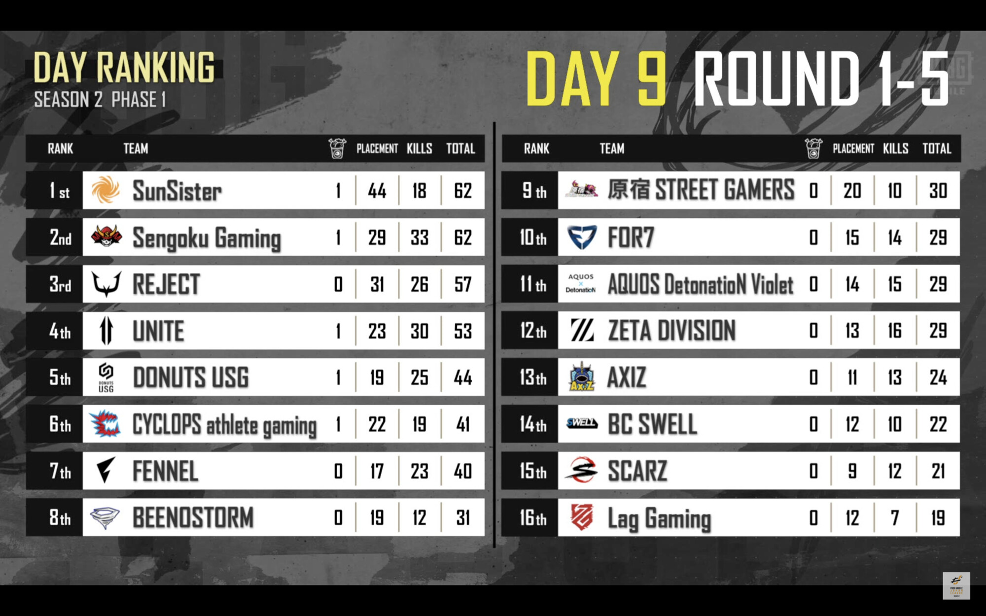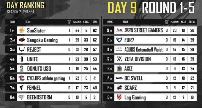 PMJL Day9同率1位🥇 キル数🥇