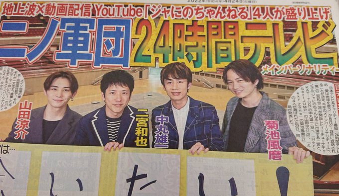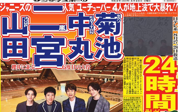 #ジャニーズ “YouTuber” #二宮和也 軍団が「24時間テレビ」メインパーソナリティー 中丸雄一、 #山田涼介 、菊池風磨 hochi.news/articles/20220… #芸能ニュース #ニュース pic.twitter.com/8VwwMEIaeB