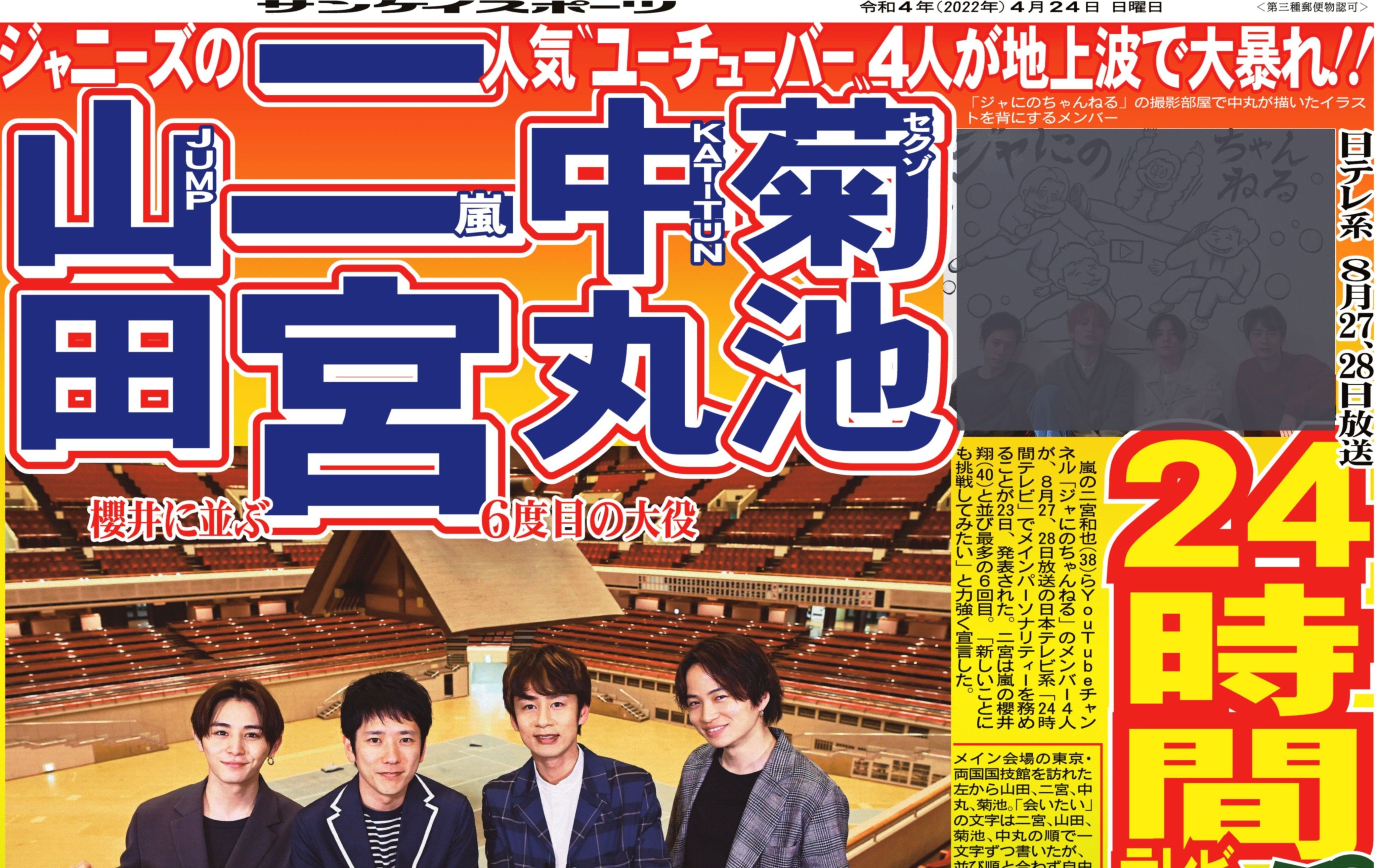 2022年夏「#24時間テレビ 45」メインパーソナリティーに“#ジャにのちゃんねる ” #二宮和也 、 #中丸雄一 、#山田涼介 、 #菊池風磨 が決定!