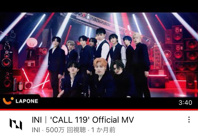 4/20にリリースされたINI (アイエヌアイ)のセカンドシングル『I』のリード曲『CALL119』MVが500万回再生されました