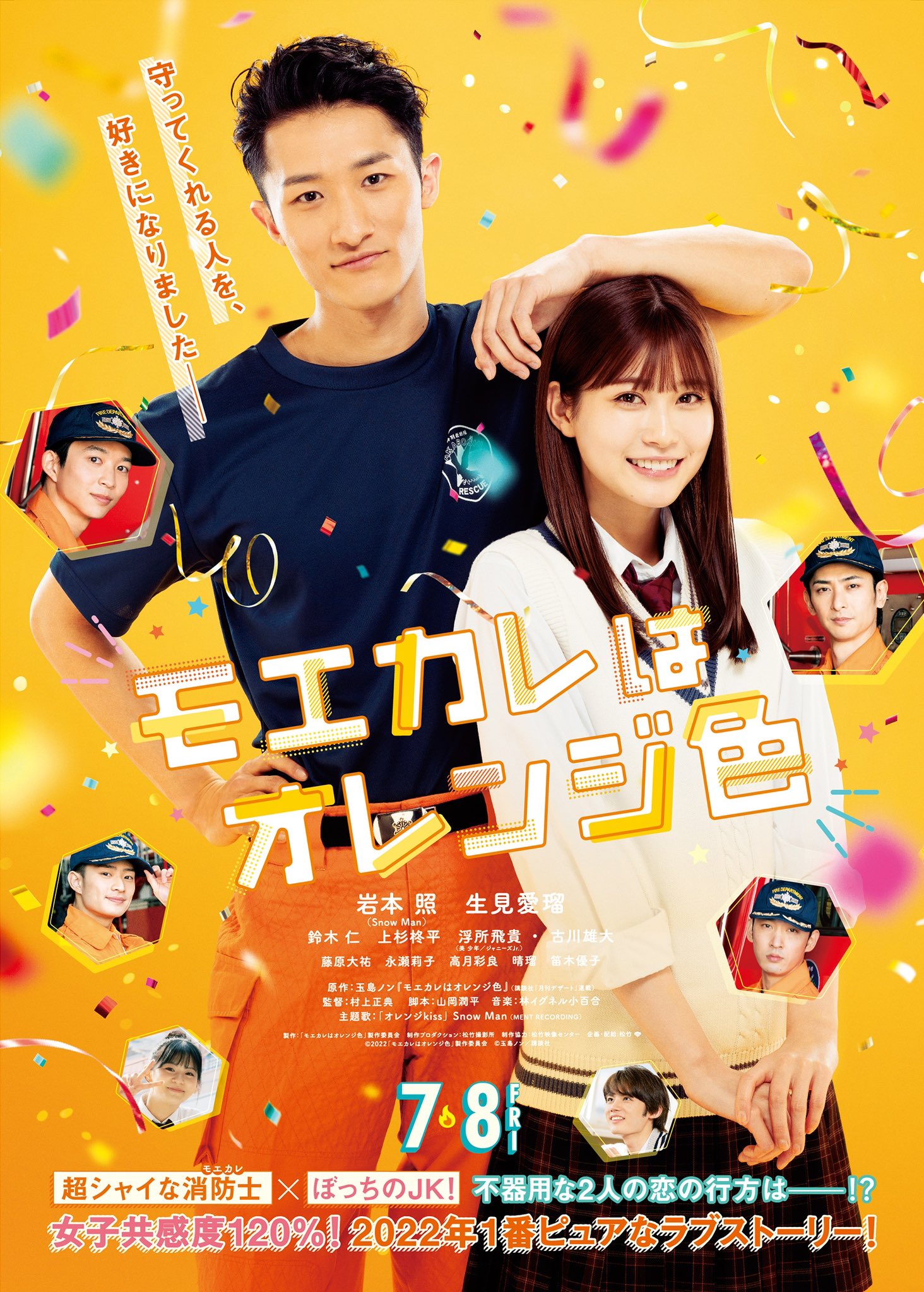 #岩本照 主演『#モエカレはオレンジ色』本予告&本ポスターが解禁、#SnowMan 新曲が主題歌に決定🎊浮所飛貴、鈴木仁、上杉柊平、古川雄大が消防士メンバーに!7月8日公開!