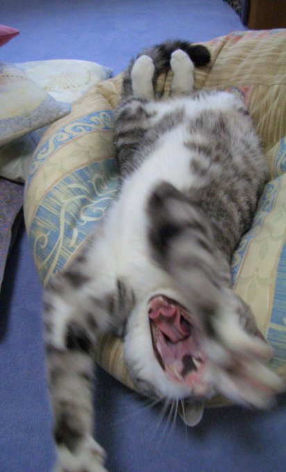 寝不足にゃー😾