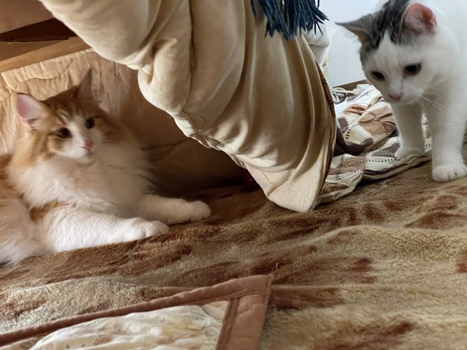 みんな、おはニャ〜😸💕新しい基地なのニャ😊パパも少しずつ元気になってるから隠れんぼしてもらお〜✌️家のこと任されたから、後でニャルソックしないとだニャ😊