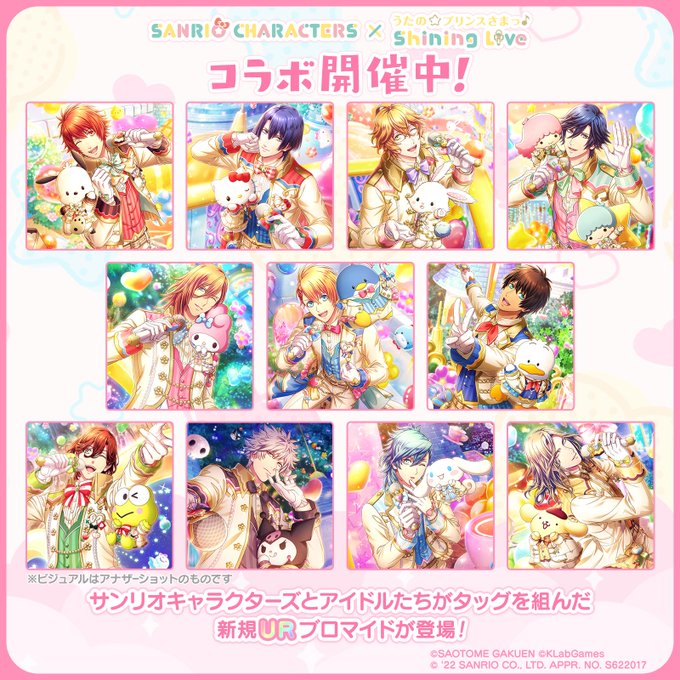 【APP】スマートフォン向けリズムアクションゲーム「うたの☆プリンスさまっ♪ Shining Live」にて、「サンリオキャラクターズ」コラボが本日よりスタート!詳細は公式アカウント(@shininglive_jp)または特設サイトをご確認ください。bit.ly/3JVHyCs #シャニライ #サンリオシャニライコラボ pic.twitter.com/098wLINNGN