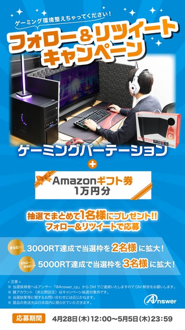 ❷この投稿をRT(4/29 AM8:59締切)