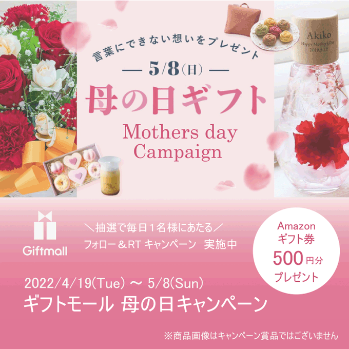 フォロー&RTで当たる! #ギフトモール母の日キャンペーン #Amazonギフト券 500円分が抽選で1名に当たりまとぅ✨