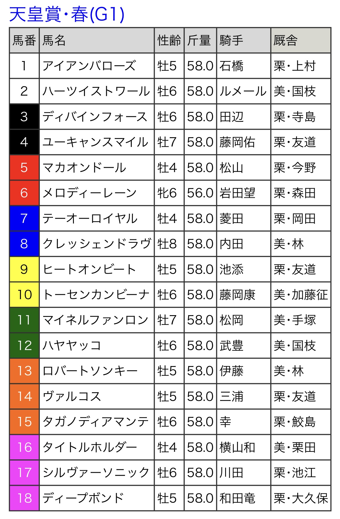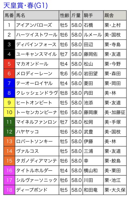 【#天皇賞春 枠順確定】