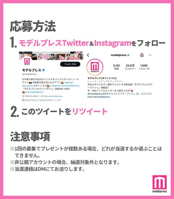 1⃣モデルプレスTwitter&Instagramをフォロー