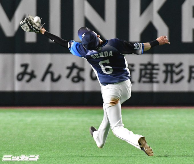 【#seibulions】#ソフトバンク 対 #西武 6回裏ソフトバンク無死、#上林誠知 の飛球を背走しながら好捕する #源田壮亮! #源田たまらん pic.twitter.com/IaCdXa2oKM