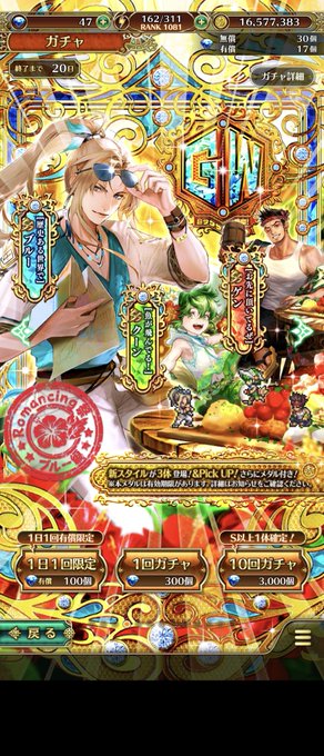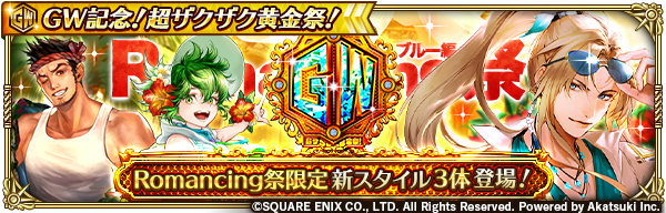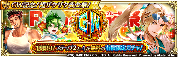 「1度限り!ステップ2と4が無料の有償限定ガチャ!GW記念!超ザクザク黄金祭!Romancing祭 ブルー編」開催!✨
