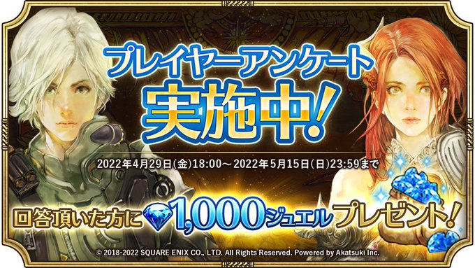 アンケートにご協力いただいた方に、1,000ジュエルをプレゼント!