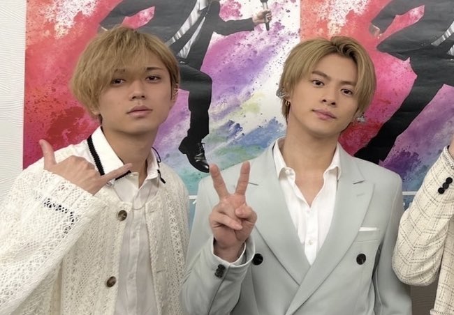 (∂ω∂) 紫耀も福岡公演に向けて、すごい長いロングヘアから短くして色染めてて。だから目立つ二人組、キンプリで今。髪色的にね。