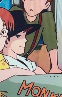 煙たがっていた #トンボ👓と話をして警戒心が解けた #キキ🧹。せっかく仲良くなれそうな異性👩🏻🤝👨🏼の友達を見つけたものの、友人グループに、パイを届けたときの少女がいることに気づき、嫉妬している様子です。初めて抱く思いに戸惑っているこのシーンも印象的ですね🤗