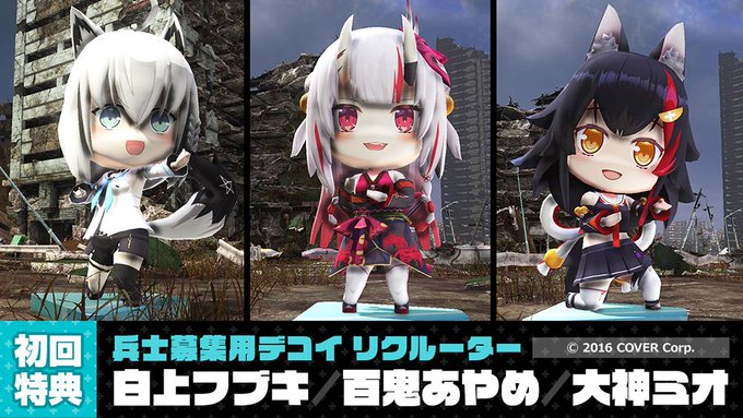 ・ホロライブより、大神ミオ(みおしゃ)、白上フブキ(フブキング)、百鬼あやめ(お嬢)のデコイが登場