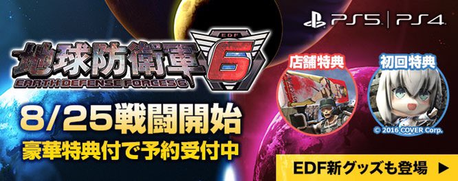 歌って踊ってしゃべる🎤豪華コラボ初回特典や、店舗特典、DL版プレオーダー特典などお得な情報満載。エリート隊員は今すぐ #EDF6 入隊手続きを。