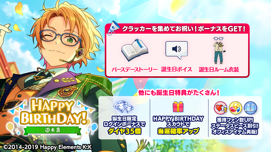 バースデークラッカー🎉を集めて限定コンテンツをGETできるほか、誕生日特典もたくさん🎵