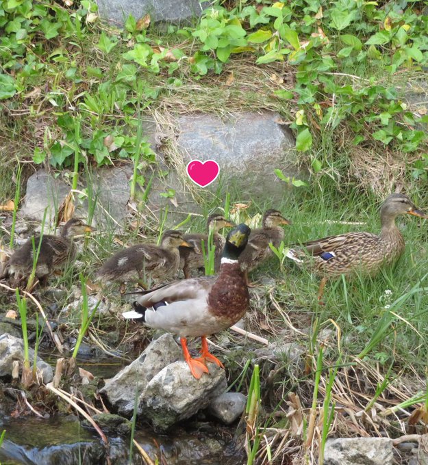お父さんカモが立っている石の下が