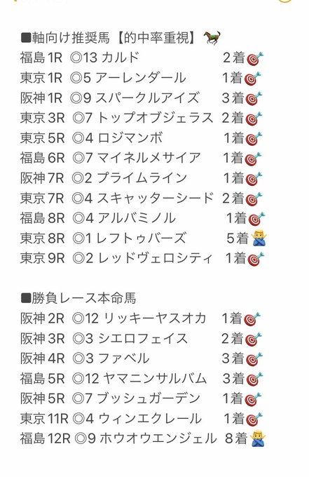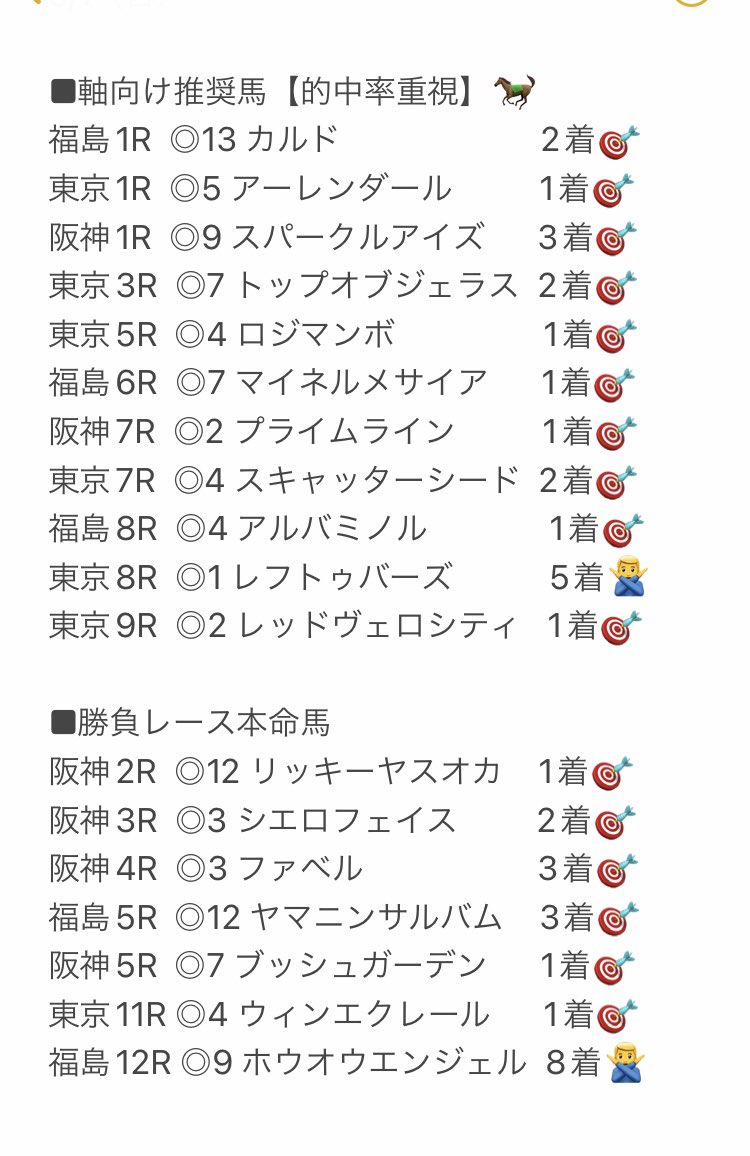 5/1(日)本命馬成績🐎