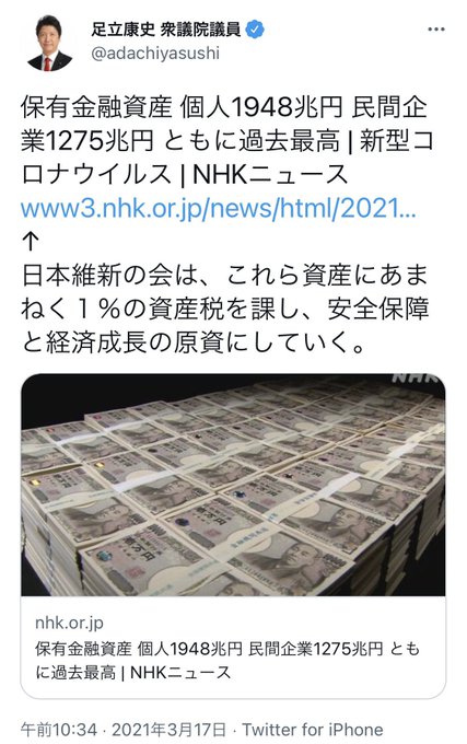 #維新に入れたら貯金に課税 twitter.com/ebisawayuki/st…