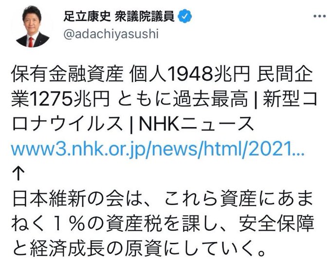 調子のいい事ばかり言ってるが #日本維新の会 に投票すれば貯金や資産に対して課税されます😫😫😫