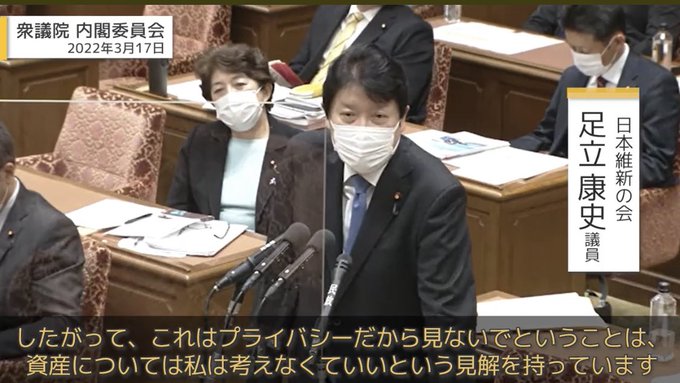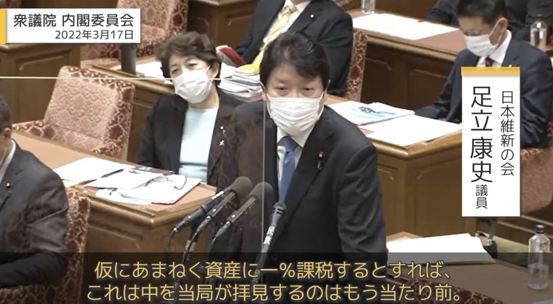 維新の信用を一番ぶち壊してるのは足立です。衆議院選挙前に公約から外したものを選挙後すぐに議論し始めた。フロー減税も同時だと嘘ついてるけど最優先で議論したのが貯金課税だ。