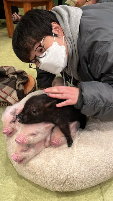 #ミニブタちゃんを愛でる3人☺️💕