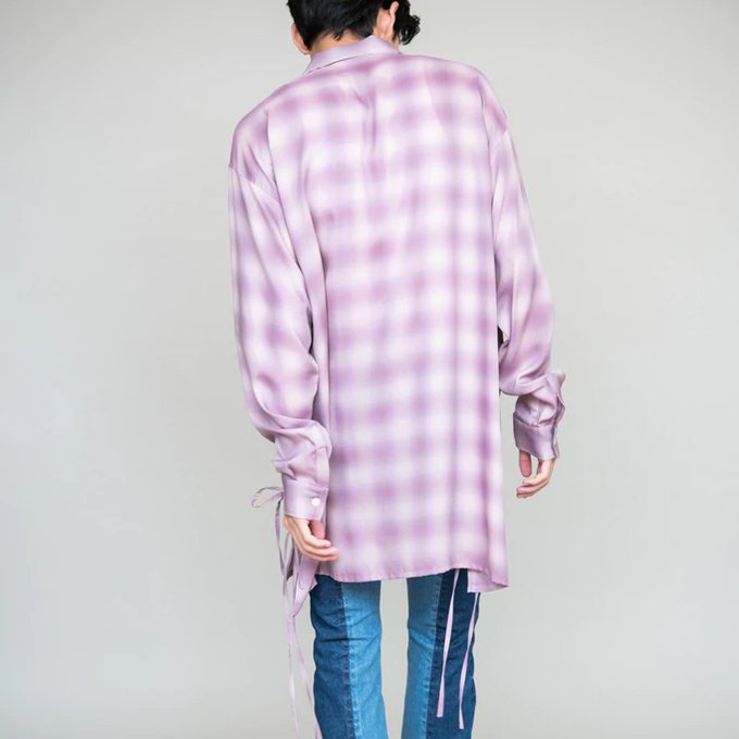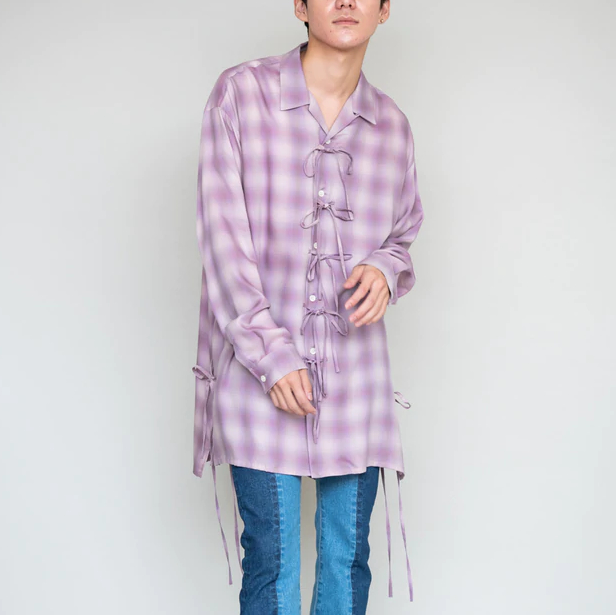 ピンクのオンブレチェックシャツ