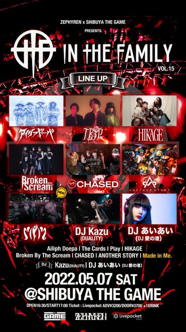 Zephyren × SHIBUYA THE GAME PRESENTS In The Family vol.15へ向かいます。