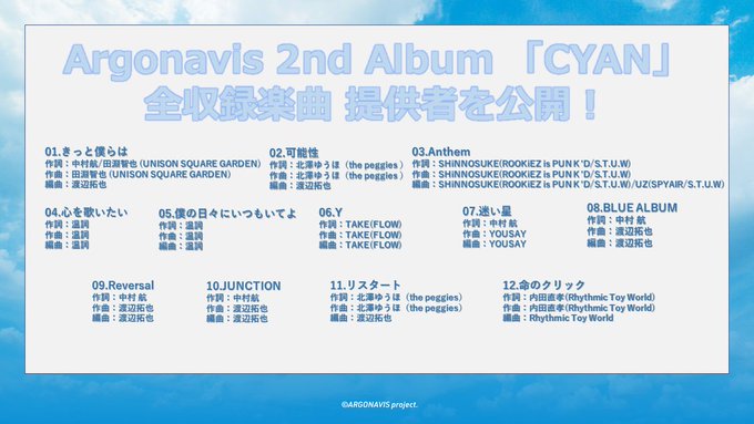 5/25(水) Argonavis 2nd Album 「CYAN」発売🚢✨