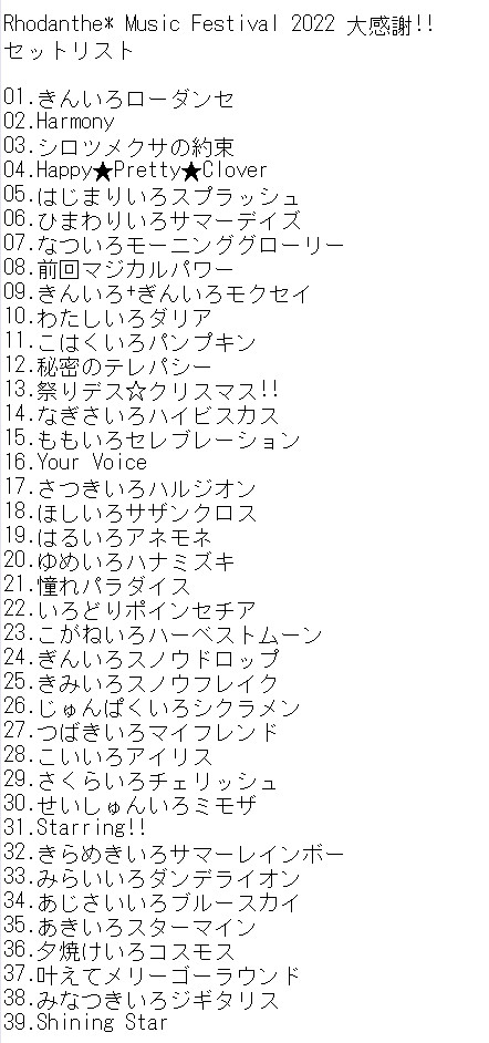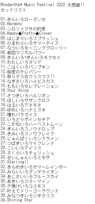 【Rhodanthe* Music Festival 2022 大感謝!!セットリスト】