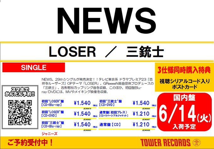 【 #NEWS NEW SINGLE「LOSER/三銃士」】