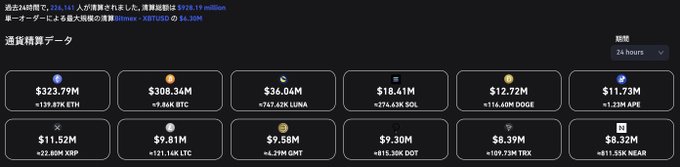 【速報】仮想通貨、1,200億円清算される⚡