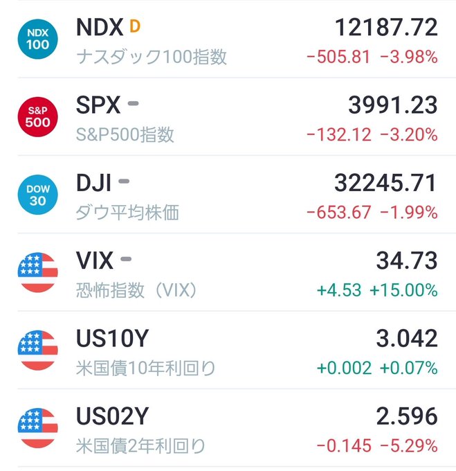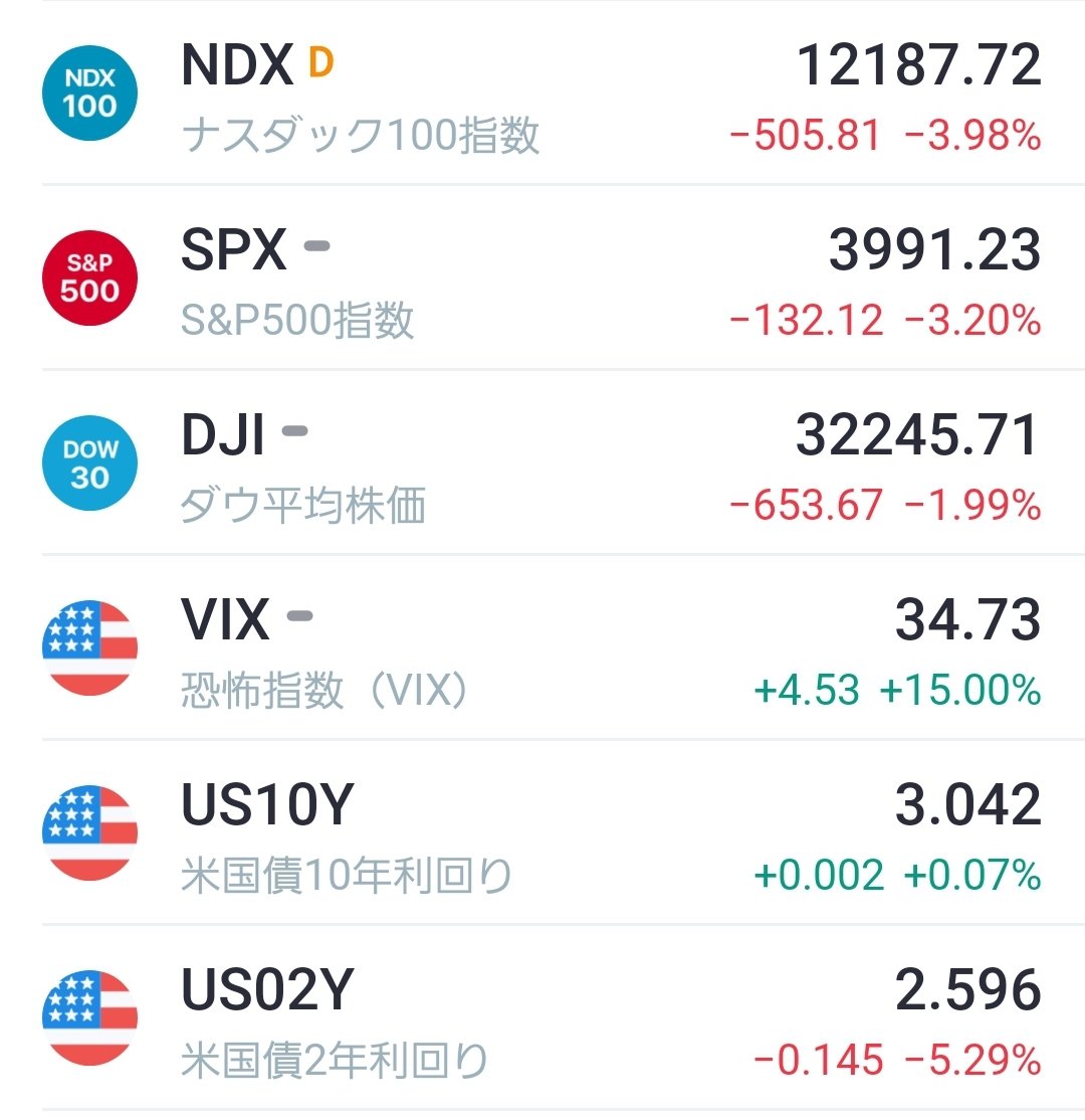 昨晩も🇺🇸3指数とも大暴落😱😱😱