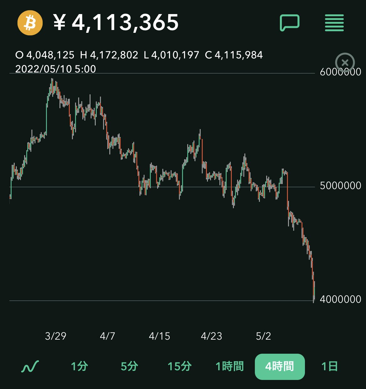 ビットコインは年初来安値を割り込み、大きな下落をしております。