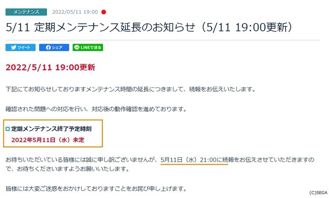 #PSO2NGS 5/11メンテ延長の件、未定&続報は21時になりました