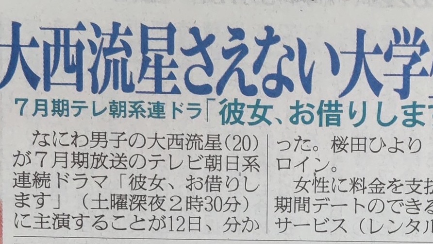 #なにわ男子 #大西流星 が7月スタートのテレ朝系「#彼女お借りします」に主演することが分かった。ドラマでは優柔不断でモテない役どころに「アイドルだと感じさせないように全力で振り切りたい」と宣言した。