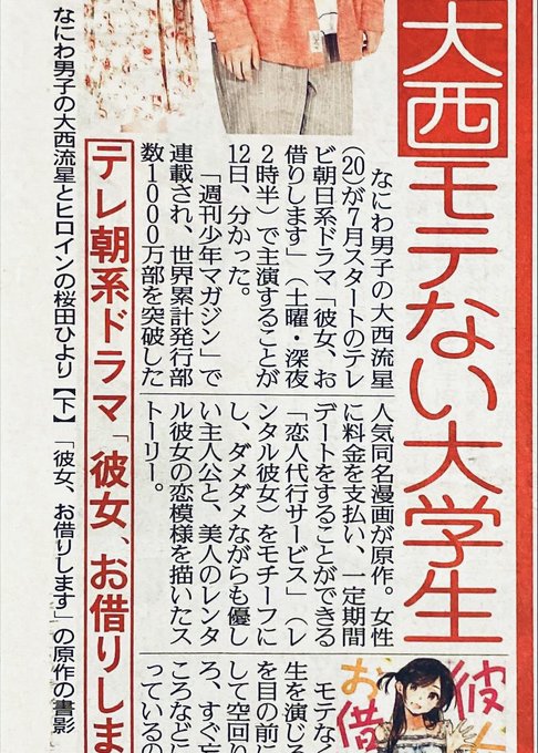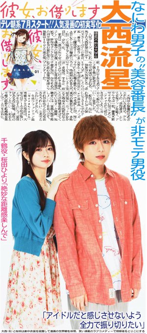 #なにわ男子 ・ #大西流星 主演で「彼女、お借りします」ドラマ化! #桜田ひより がヒロイン