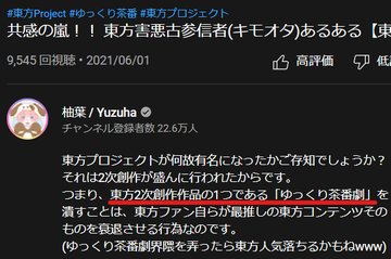 過去にあなたが「ゆっくり茶番劇」は東方プロジェクトの有名コンテンツだと言っていますが…。