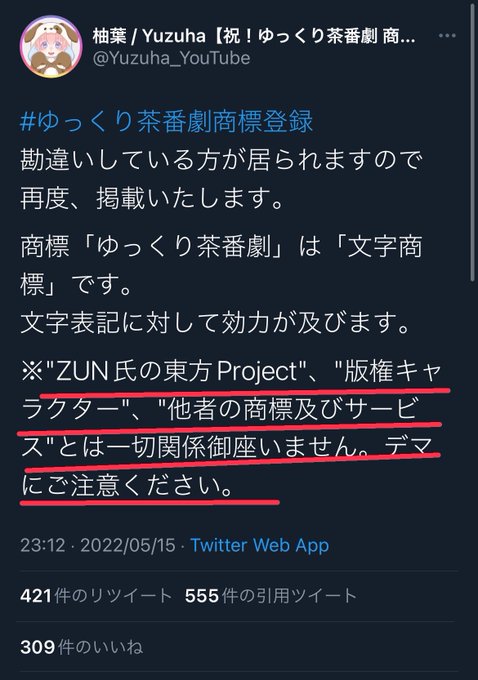 #ゆっくり茶番劇商標登録に抗議します twitter.com/Yuzuha_YouTube… pic.twitter.com/WsNVfJDC2b