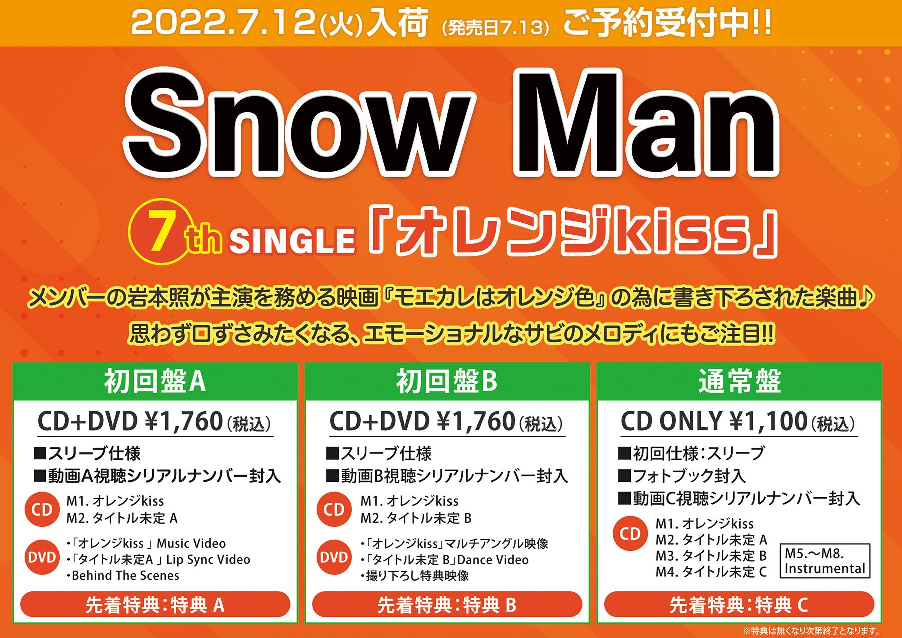 Snow Man 7thシングル『オレンジkiss』発売決定✨
