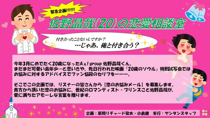 【緊急企画!!!!!!】佐野晶哉(20)の恋愛相談室【ヤンタンはやるでぇ】