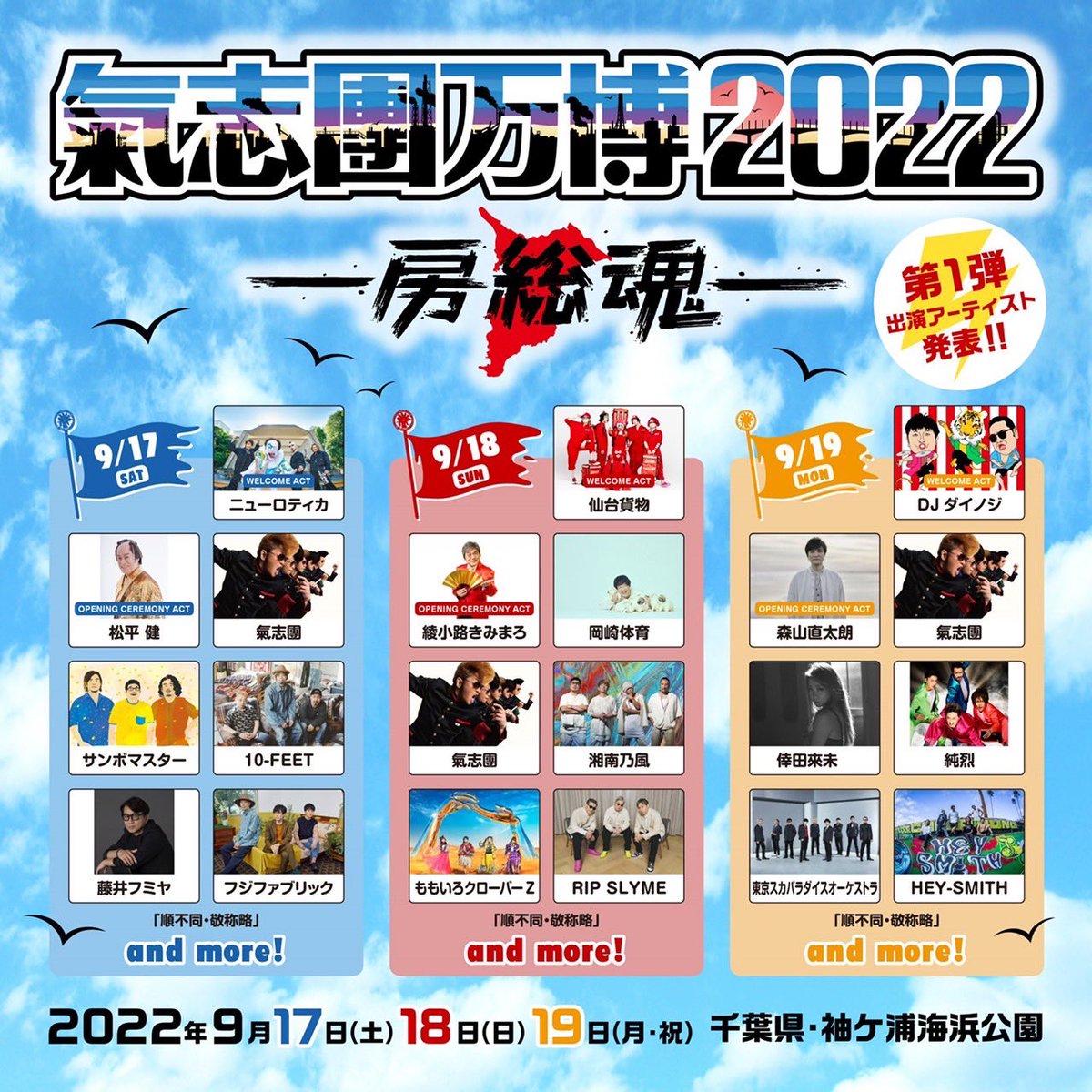 3年振りの現地開催。とんでもない仲間達が大集結致します。まずは第一弾出演者発表。悪いこたぁ言わない。幸せにしかしない。太陽と潮風の国で君を待ってる。