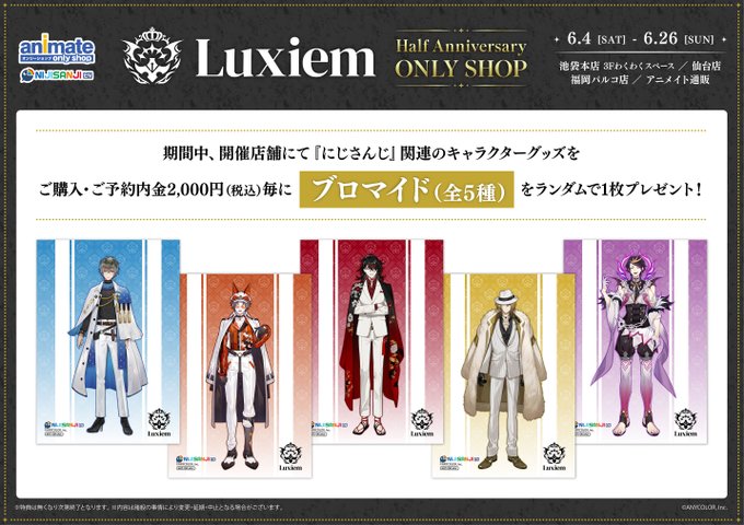 【池袋本店・仙台店・福岡パルコ店】6/4~ NIJISANJI EN Luxiem Half Anniversary ONLY SHOP開催決定!