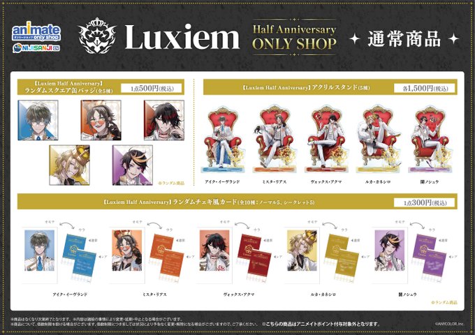 【NIJISANJI EN Luxiem Half Anniversary ONLY SHOP】開催決定!「Luxiem」のハーフアニバーサリーを記念した展示や商品、特典は見逃せません…!さらに、本日より一部店舗にてオンリーショップ情報等が掲載されたチラシを配布いたします♪詳細はこちら bit.ly/3NnopeT #NIJISANJI_EN #Luxiem pic.twitter.com/DP4KdyKi1T