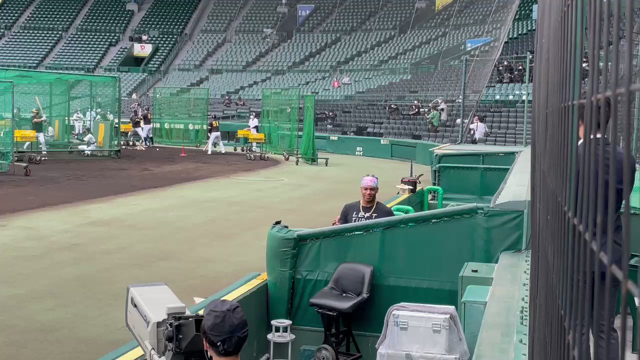 昨日は東京から移動してナイター(5時間3分!!!)とタフな日程でした。本日のグランドでの全体練習は今のところ行われていません。#ウォーカー 選手がベンチに現れ、カメラで甲子園の景色を撮影していました